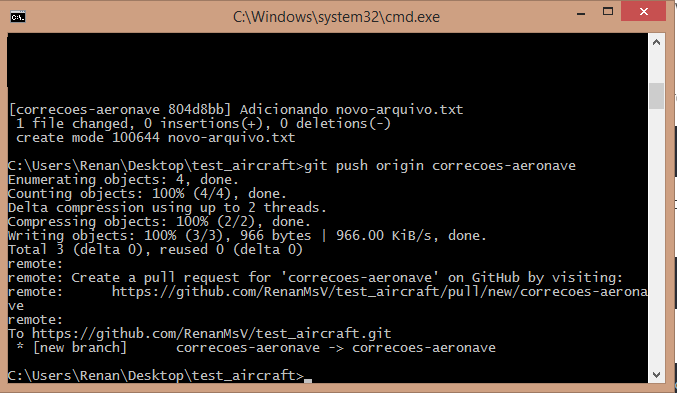 Então para fazer o push é necessario saber o nome da branch que no meu caso é ‘correcoes-aeronave’ e digitar: