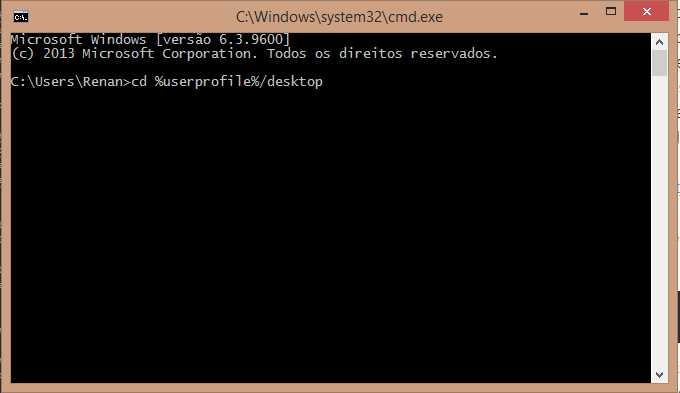 E aperte Enter. O CMD será direcionado a pasta da area de trabalho.