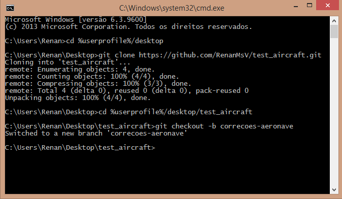 Neste tutorial vamos trabalhar utilizando este repositorio de teste: https://github.com/RenanMsV/test_aircraft